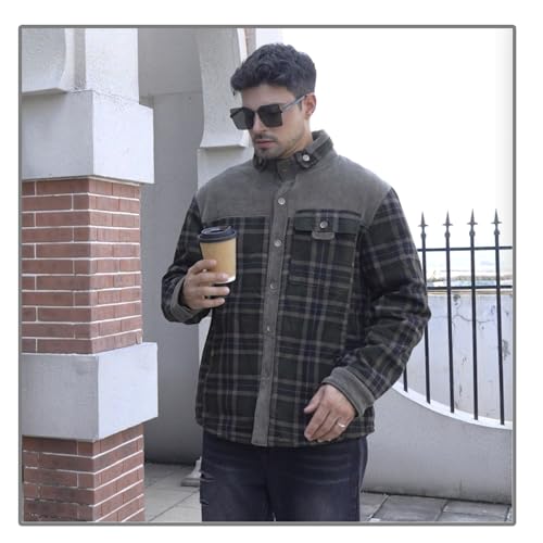 Men's Classic Fit Sherpa Lined Jacket Warm Flannel Shirt, Plaid Button-Down,Outdoor Work for Cold Winter 2