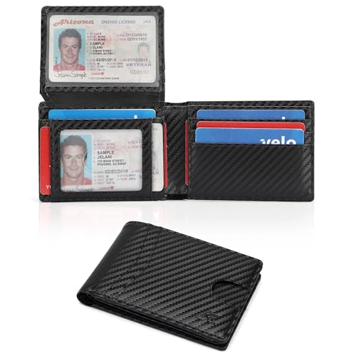 • QUALITY CRAFTSMANSHIP WITH DURABLE MATERIAL: Our Carbon Fibre bifold wallet is crafted from durable leather featuring a unique three-layer pressed structure that enhances its strength and longevity. The anti-scratch finish ensures that it remains in pristine condition, resisting the wear and tear of everyday use. This bifold wallet also includes multiple card slots, holding up to 15 cards in one version and 11 in another, all while maintaining a compact profile that easily fits into your pocket.
