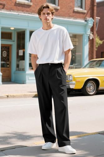 Heyfanee Mens Casual Pants Loose Fit Slacks for Men with Belt Loops