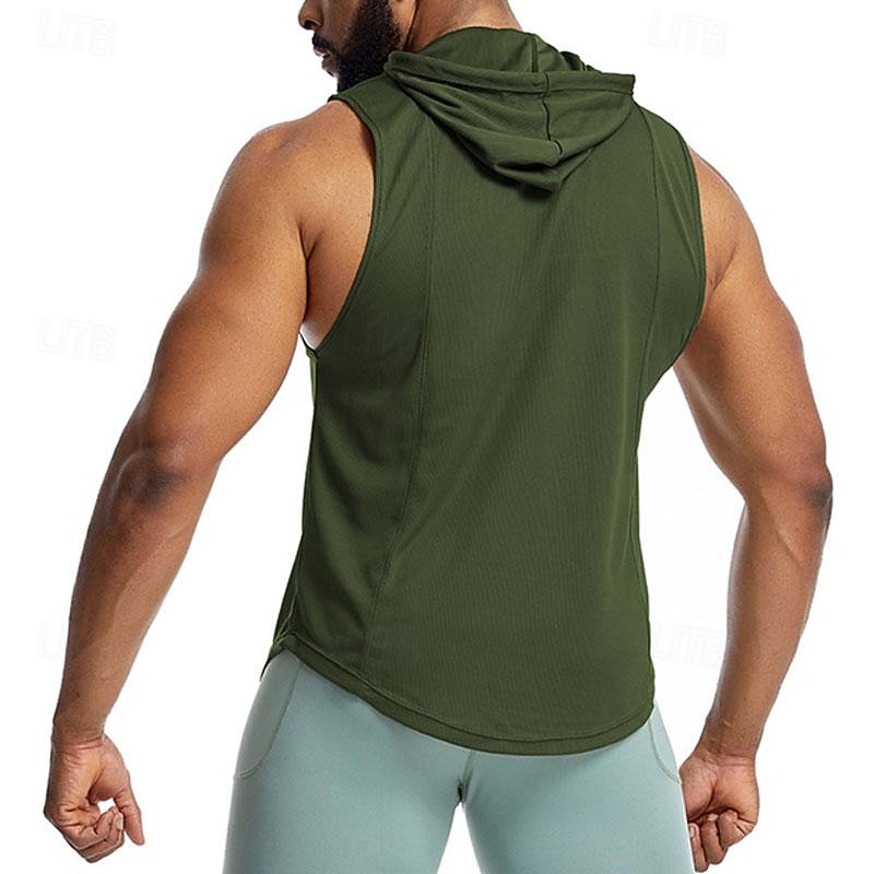 Men's T shirt Hiking Vest Sleeveless Hooded Tank Top Sleeveless Shirt Vest Top Outdoor Quick Dry Soft Sweat wicking Polyester Black White Army Green Climbing Camping / Hiking / Caving Traveling 2