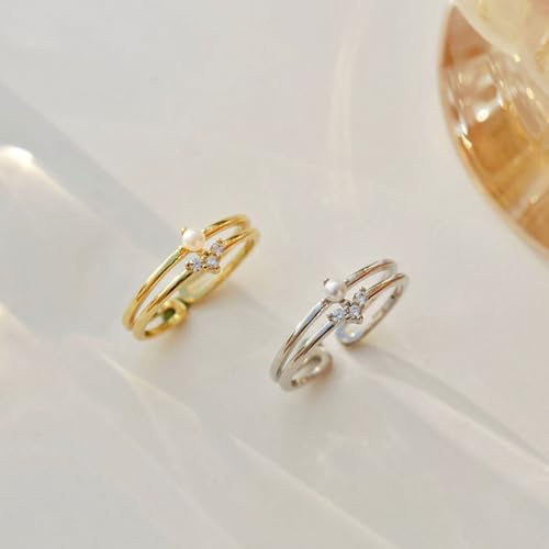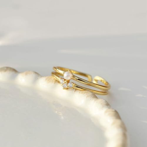 Cubic Zirconia Rings For Women, Pearl Ring Trendy Crown Shape Copper Non Tarnish Stackable Engagement Statement Birthday Open Adjustable Jewelry Gift 1