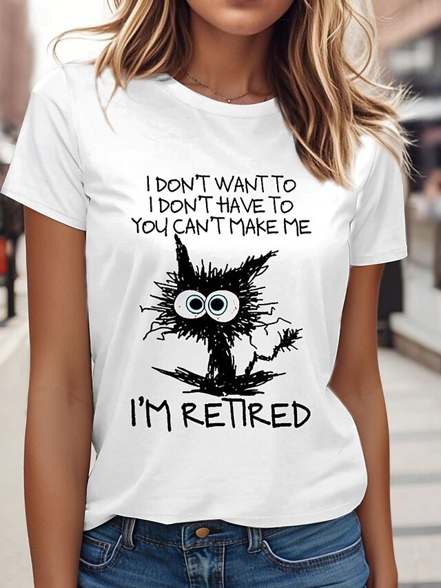 More information about Women's T Shirt Retired Graphic Animal Letter Stylish Classic Casual Short Sleeve Crew Neck Regular Tops Daily Weekend Print White Pink Blue Purple Summer Spring