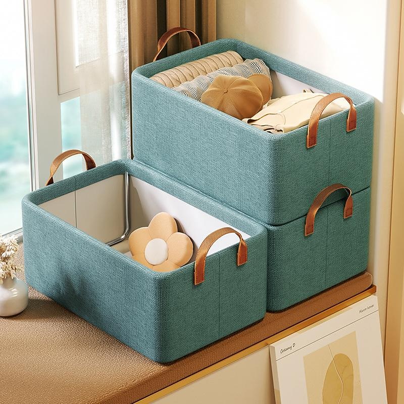 Foldable Storage Box With Steel Frame, Large Capacity Clothes Trousers Storage Basket, Portable Home Wardrobe Storage Box 9
