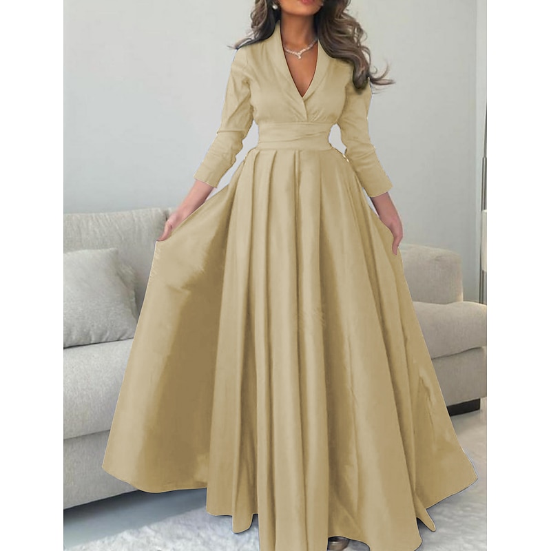 More information about Satin A-Line Chrismas Dress Evening Gown Elegant Dress FormalRed Dress Floor Length 3/4 Length Sleeve V Neck with Pleats dress to impress