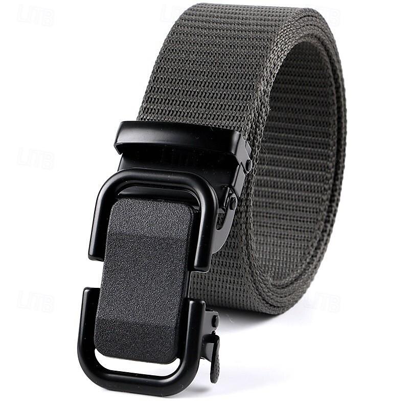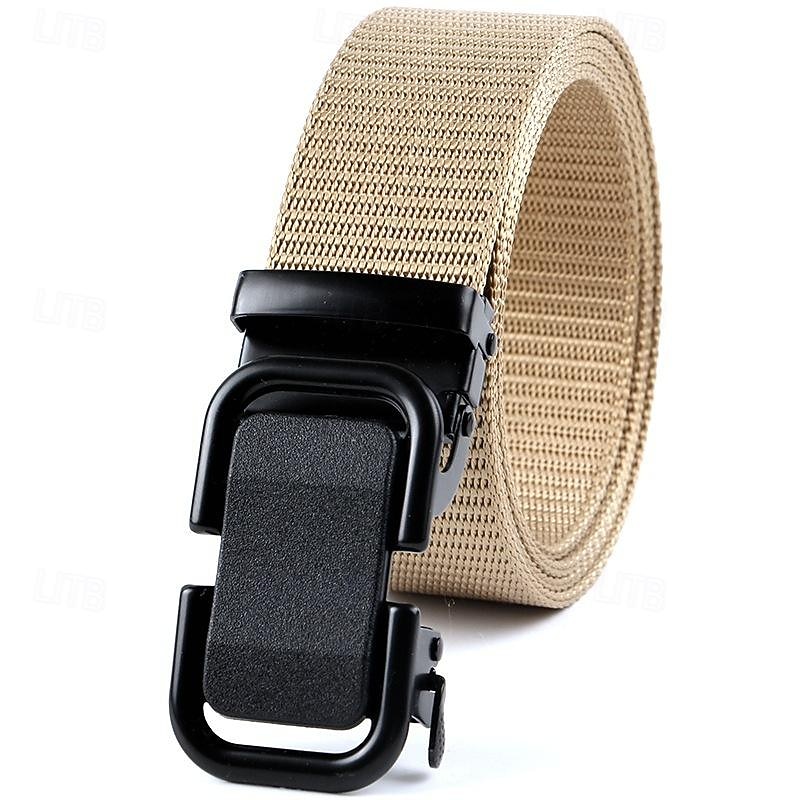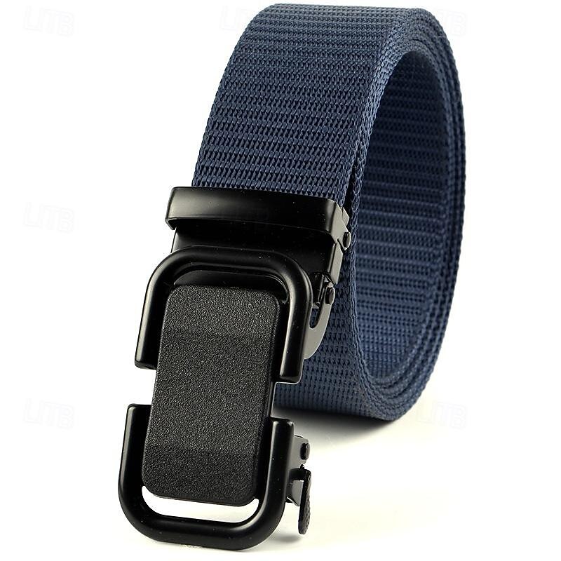 Highlights [Fabric]: Crafted from high-quality nylon, this men's belt is designed for durability and flexibility. The material is strong yet comfortable, offering ease of movement for outdoor activities or daily use. [Silhouette]: This waist belt offers a robust and adjustable design, ensuring a secure fit for a wide range of waist sizes. Its straightforward, heavy-duty structure makes it a reliable choice for various occasions. [Design Highlights]: Featuring a sturdy metal automatic buckle, this belt combines functionality with a sleek aesthetic. The belt is available in versatile colors like Black, Dark Gray, Navy Blue, Coffee, Army Green, and Khaki, making it easy to pair with different outfits. [Occasions]: Ideal for both outdoor adventures and everyday wear, this belt suits various settings from casual outings to more rugged environments. Its versatile design ensures it complements any wardrobe. [Size]: Designed as a one-size-fits-all, this adjustable belt can accommodate a wide range of waist sizes, making it suitable for most men seeking a practical and stylish accessory.