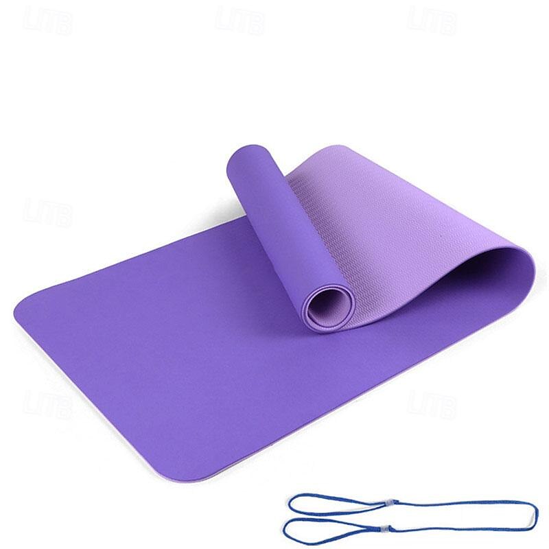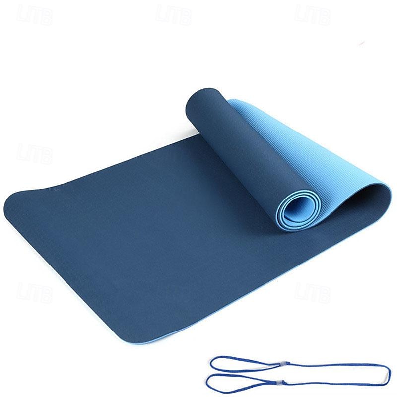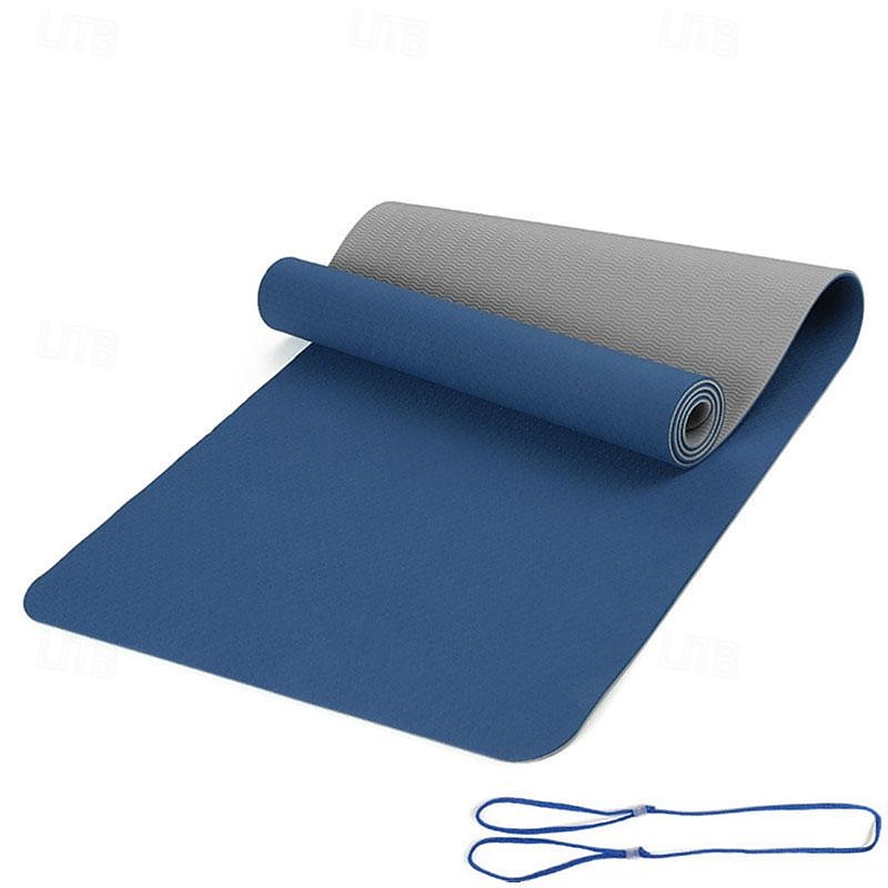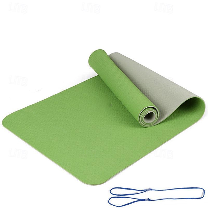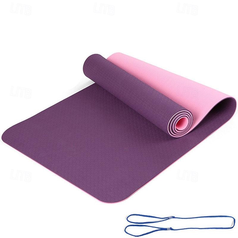 TPE6mm Two tone Yoga Mat Set of Five Pieces for Sports Fitness Stretching Latex 2080 Resistance Belt Comes with Backpack Strap 30