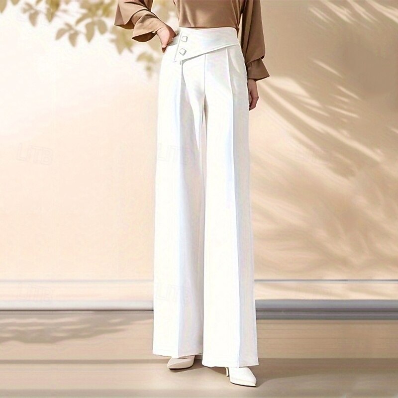 More information about Women's Wide Leg Dress Pants Pants Trousers Fashion Streetwear Full Length High Waist Plain Breathability Comfortable Street Daily Wear Going out Black White Red Royal Blue Spring Fall Regular Fit