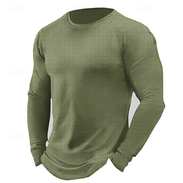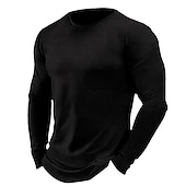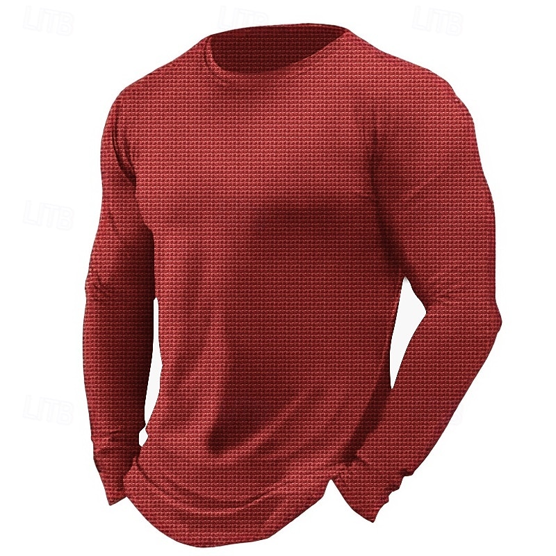 More information about Men's Waffle Shirt Long Sleeve Shirt Long Sleeve Round Neck Fall & Winter Plain Plaid / Check Sportswear Casual Leisure Sports Going out Gym Black White Burgundy Top Tee for Men