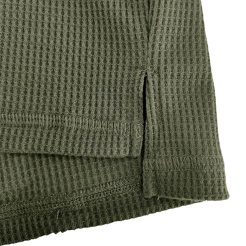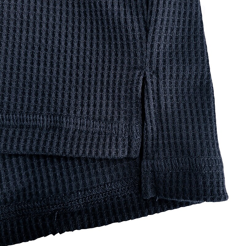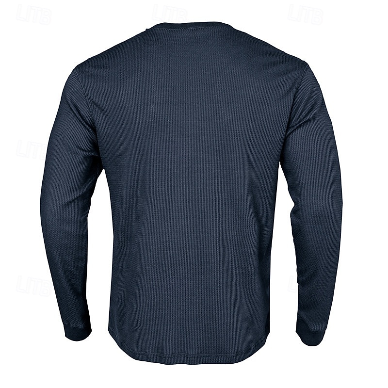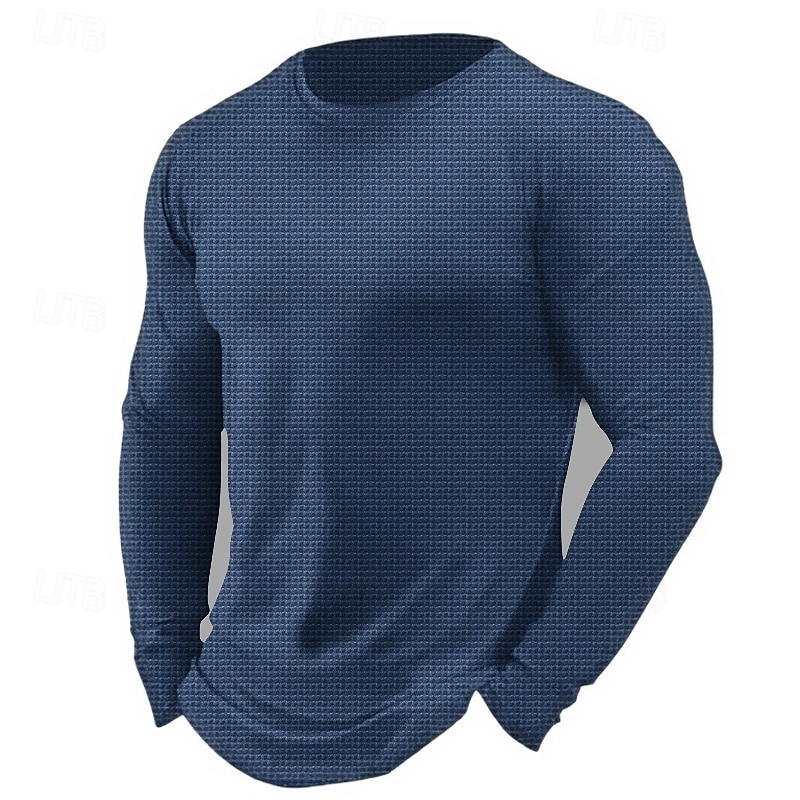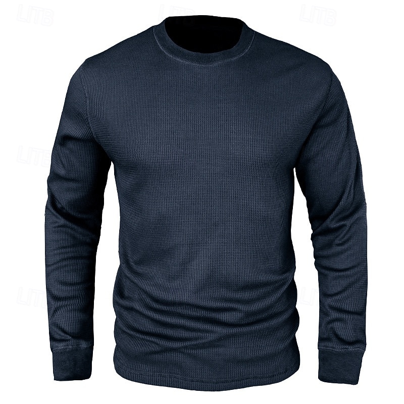 Highlights - Stay cozy with the long sleeve design, perfect for any chilly day. - This top is designed with men in mind, providing both comfort and style. - The round neck neckline adds a touch of classic elegance to your wardrobe. - The waffle knit style is not only visually appealing, but offers added texture and warmth to your outfit.