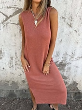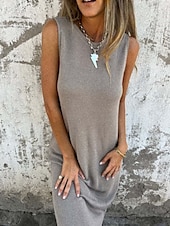 More information about Women's Long Dress Maxi Dress Casual Dress Tank Dress Summer Dress Fashion Modern Daily Weekend Regular Fit Plain Sleeveless Crew Neck Pink Khaki Summer
