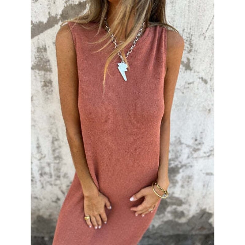 Women's Long Dress Maxi Dress Casual Dress Tank Dress Summer Dress Fashion Modern Daily Weekend Regular Fit Plain Sleeveless Crew Neck Pink Khaki Summer 11