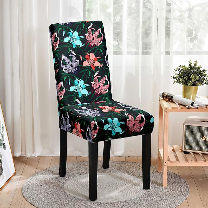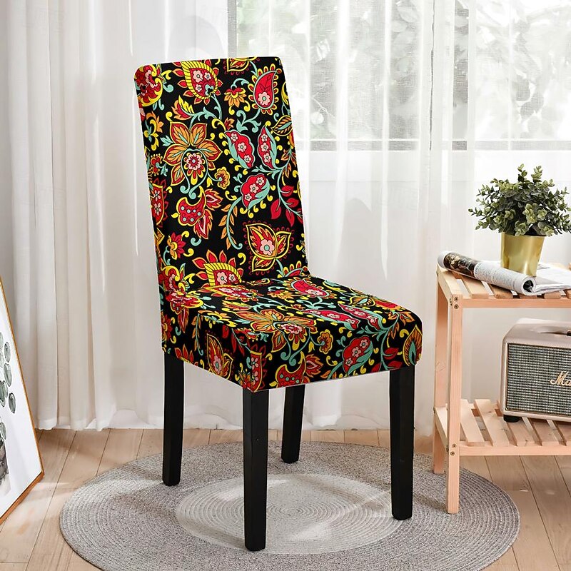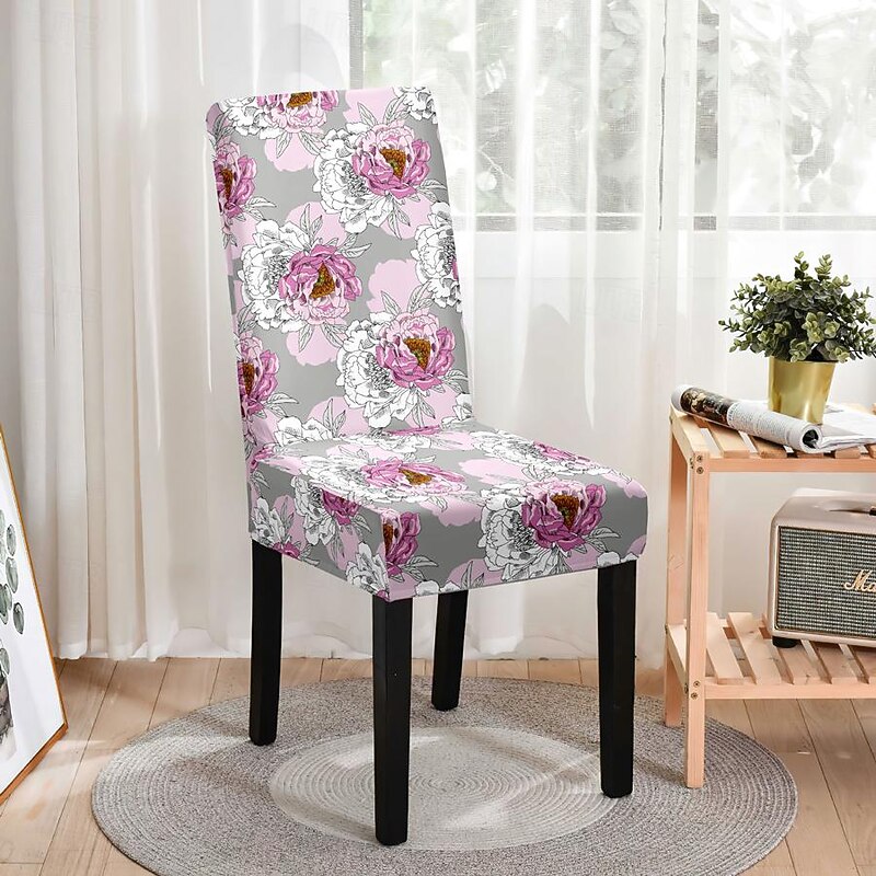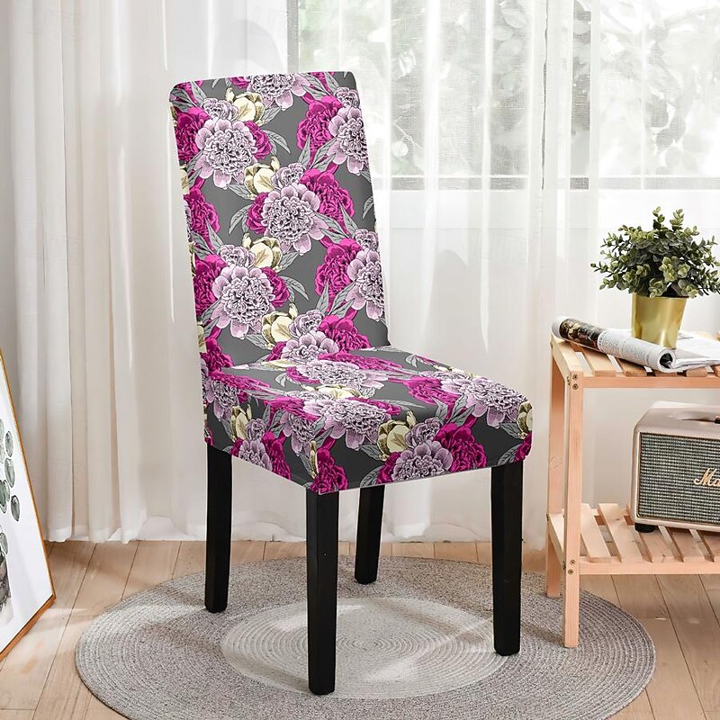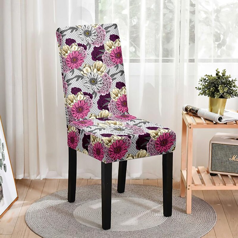 Stretch Spandex Dining Chair Cover 1 Piece, Floral Printed Stretch Chair Protector Cover Seat Slipcover with Elastic Band for Dining Room,Wedding, Ceremony, Banquet,Home Decor