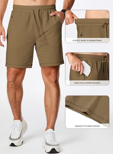 JMIERR Mens Gym Shorts Cotton 7" Running Comfy Workout Shorts Zipper Pocket Sweat Shorts 5