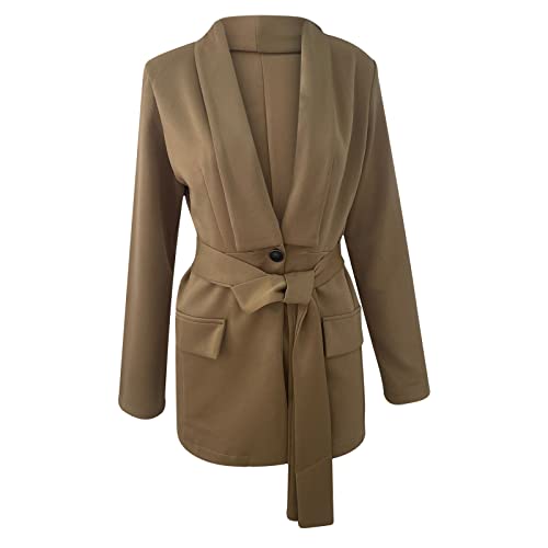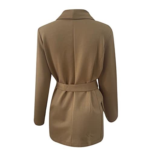 Womens Fashion Blazer Coat Trendy Blazers Dress Work Office Open Front Long Cardigan Long Sleeve Jackets with Belt 5