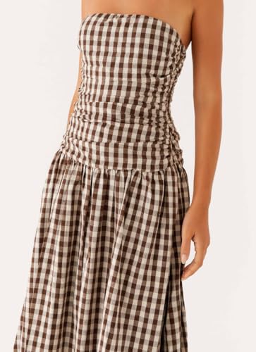 UAURORAO Women Gingham Strapless Maxi Dress Drop Waist Tube Long Dresses Off Shoulder Backless Flowy Cocktail Dress 5