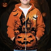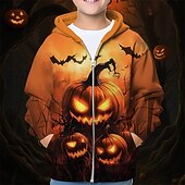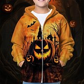 More information about Halloween Unisex Boys' Girls' 3D Pumpkin Hoodie Coat Outerwear Long Sleeve Spring Fall Adorable Sport Kids 4-12 Years Zip Street Daily Regular Fit