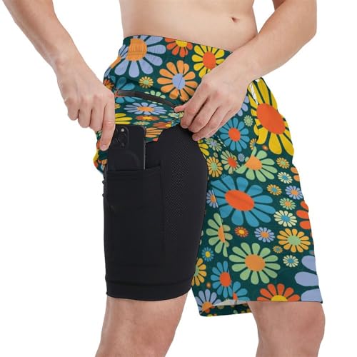 Mens Swim Trunks with Compression Liner Bathing Suits 9" Inseam Quick Dry Beach Shorts with Zipper Pockets Swimming Shorts 7