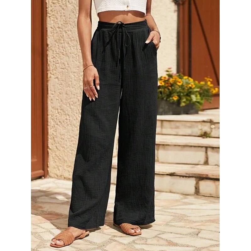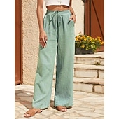 More information about Women's EU / US Size Cotton Linen Pants Straight Comfort Trousers Full Length Natural Plain Drawstring Comfy Inelastic Daily Wear Casual Daily Apple Green Black Walnut Spring Fall & Winter Loose Fit
