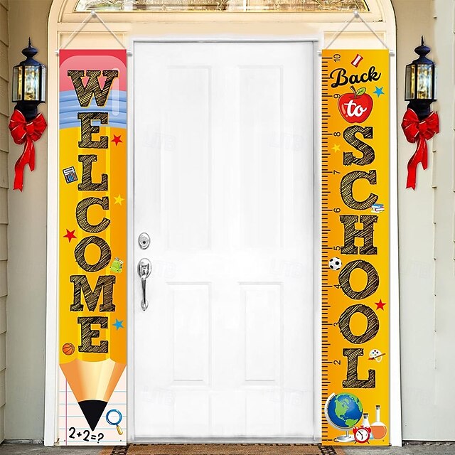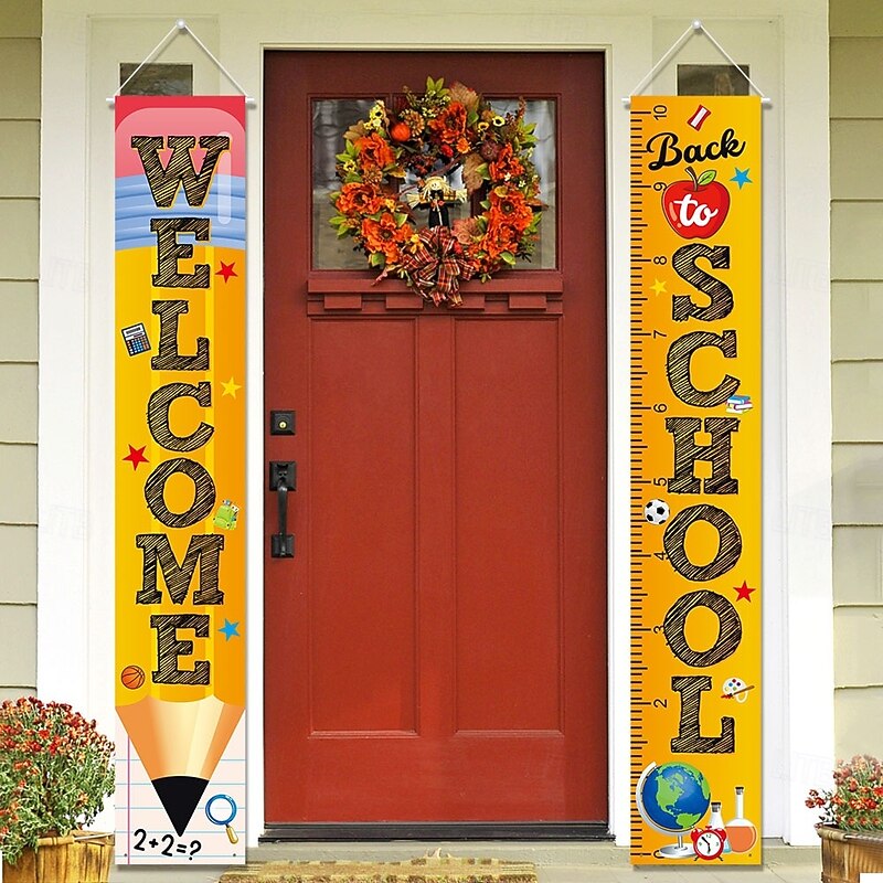 Back to School Decorations Outdoor,Porch Banner Couplets Door Banner American Flag Welcome Sign Door Hanging Flag 2