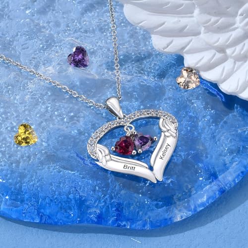 HOT ! Custom Heart Pendant Necklace for Mom and Grandma with 1-6 Names and Simulated Birthstones Personalized Mother Sterling Silver Necklace for Christmas Birthday or Mother's Day