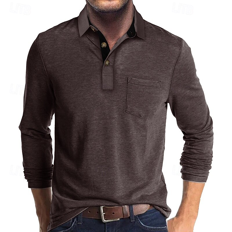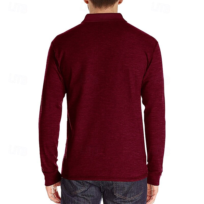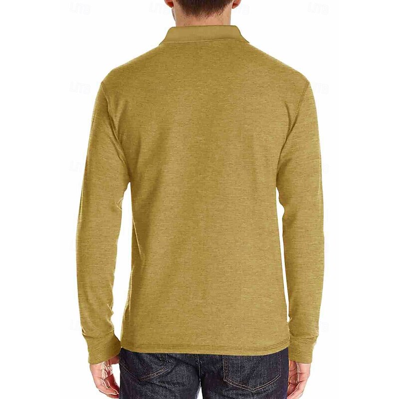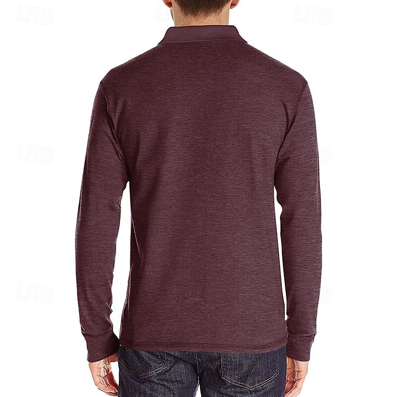 More information about Men's Golf Shirt Golf Polo Work Casual Lapel Long Sleeve Basic Modern Solid Color Button Pocket Spring & Fall Regular Fit Wine Apricot Black White Dark Red Yellow Golf Shirt
