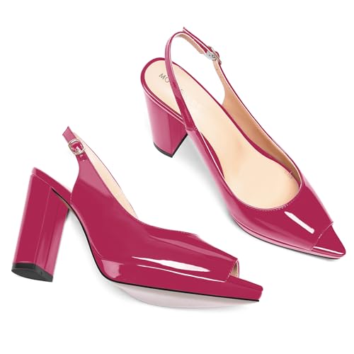 HOT ! MOVINSTEPS Womens Buckle Bridal Pointed Toe Platform Adjustable Strap Fashion Patent Block High Heel Pumps Shoes 4 Inch