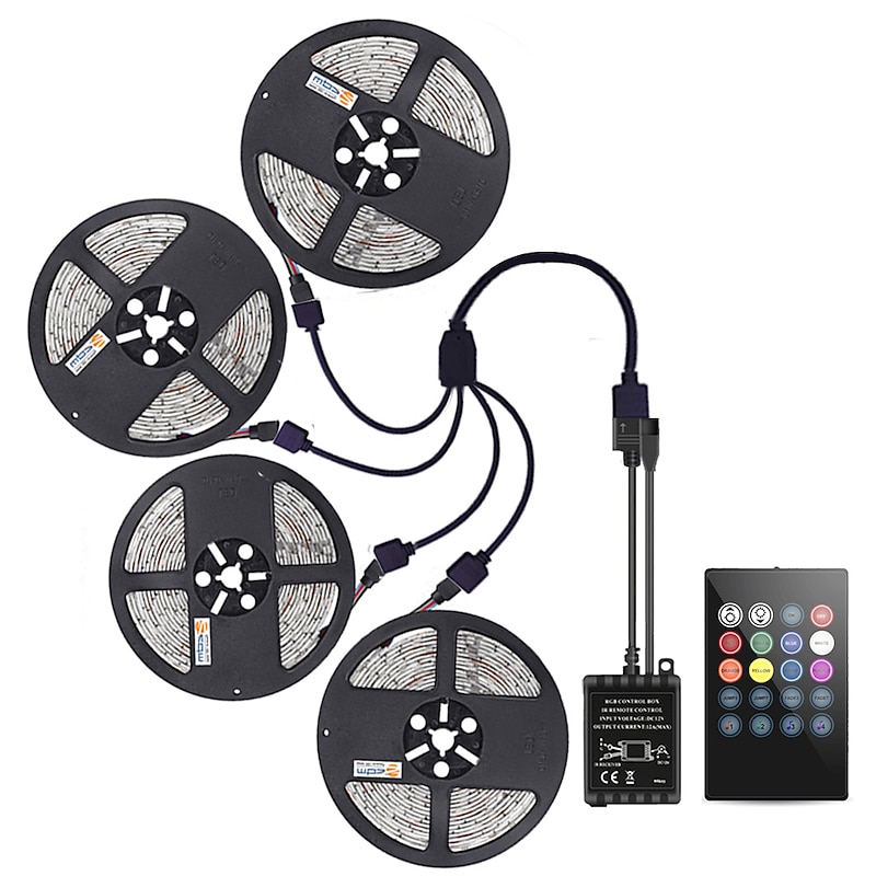 65ft  4x 5 Meter Music Synchronous Happy Multicolour Light Strip 2835 RGB LED Flexible Light Strip with 20 key IR Controller Optional with Adapter Kit DC12V 17