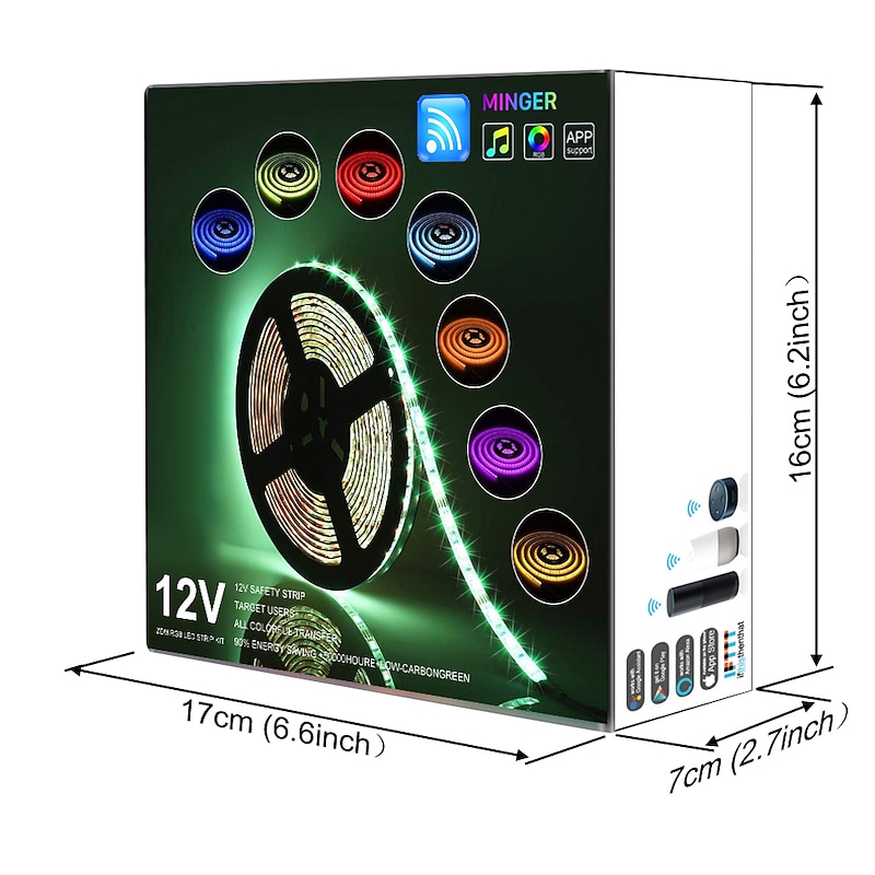 Highlights - SMD5050 light source offers a wide range of color options including red, green, blue, white, orange, pink, purple and yellow - Remote control should be pointed directly at the receiver within 3 meters for best results - For LED strip lengths longer than 5m, wire strips in parallel to the transformer instead of in series - Multiple LED strips should be wired back to a single transformer for optimal performance - There are different power adapter options available and should be chosen with care before placing the order