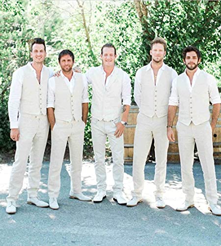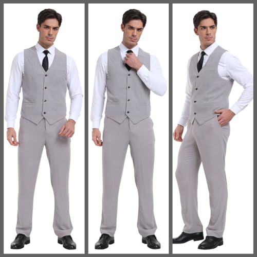 More information about Linen Beach Wedding Suits Men's Slim Fit 2 Piece Groom Suit Prom Party Dress Tuxedos Vest Pants Suit Set Gray 3XL