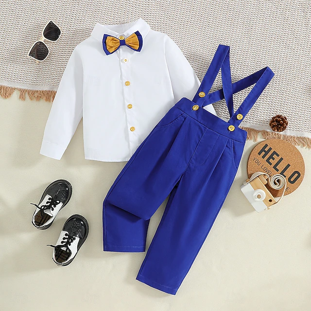 Boys 3D Solid Color Bow tie Shirt & Pants Long Sleeve Fall Casual Toddler 1-5 Years V Neck 7