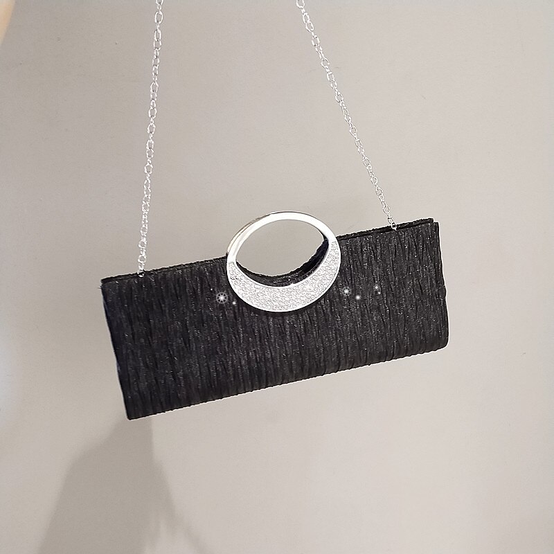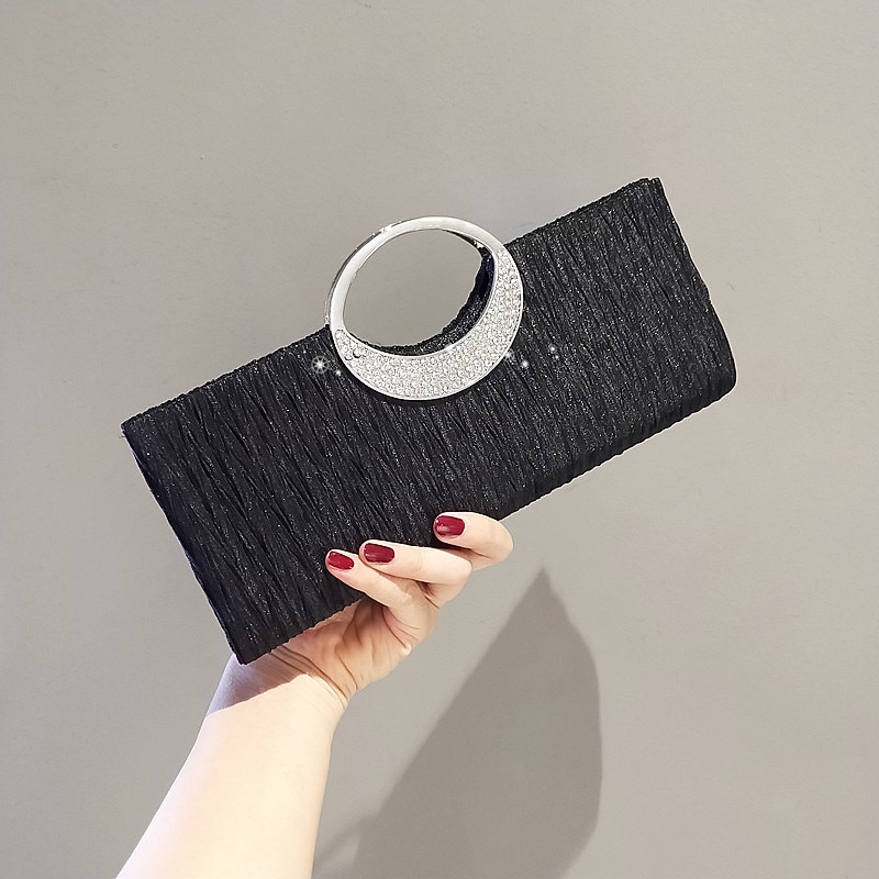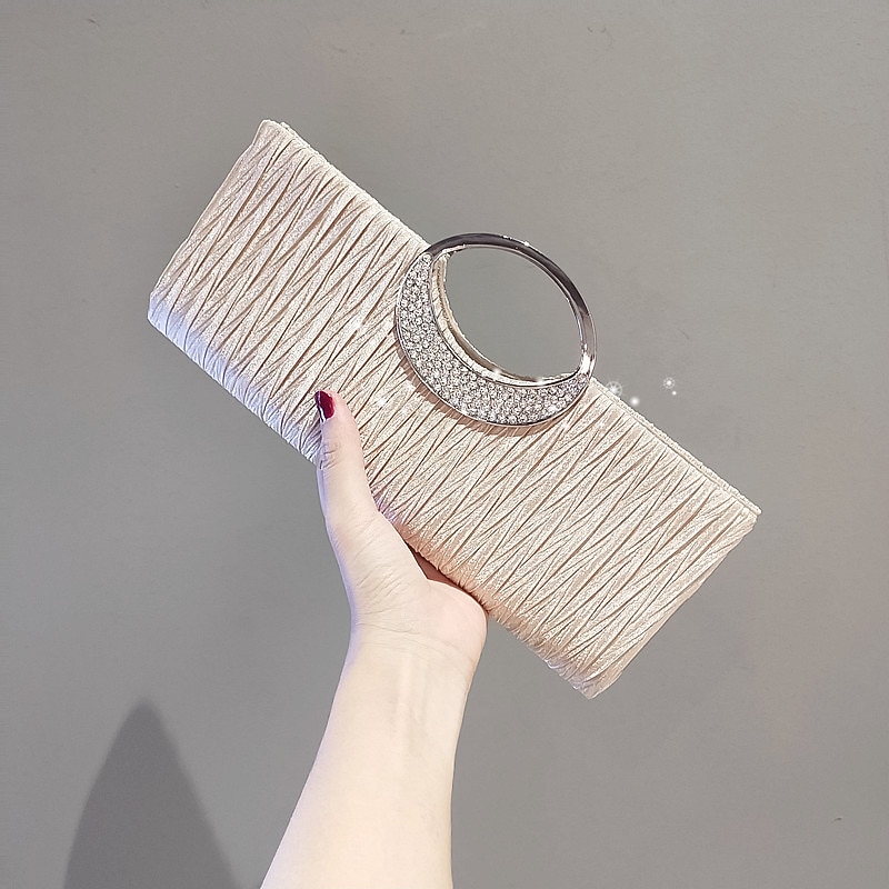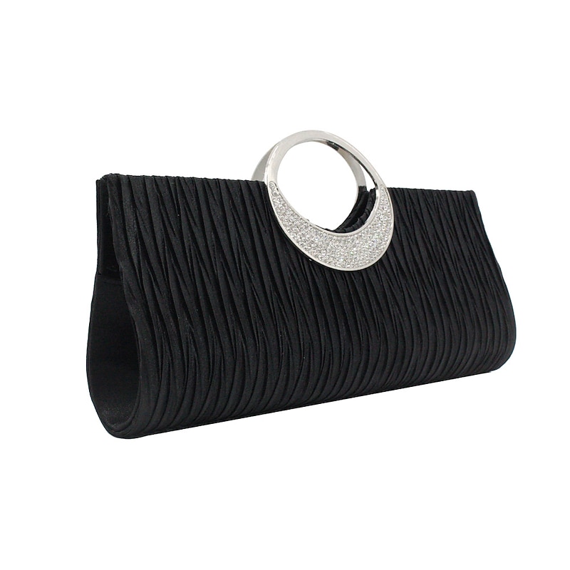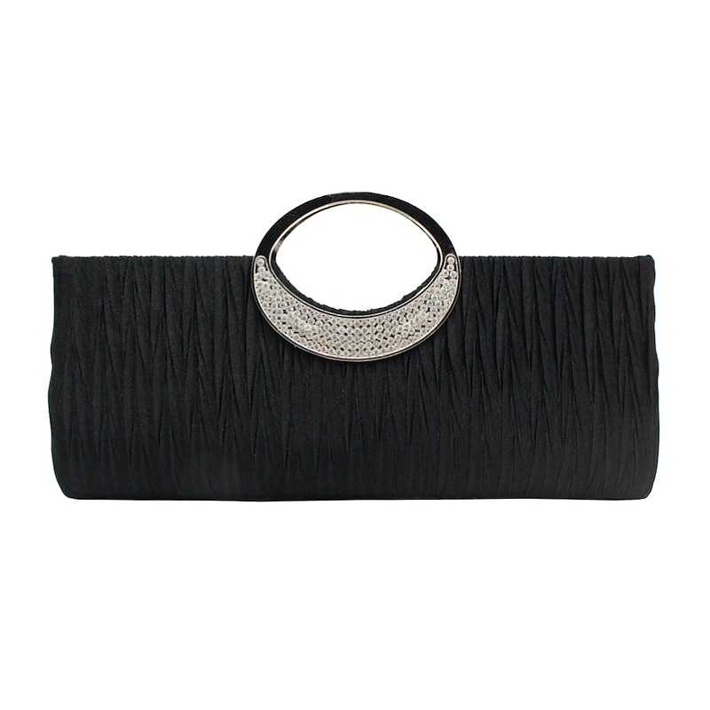 trending ! Women's Elegant Evening Clutch Bag - Rhinestone Handle, Pleated Satin, Wedding & Party Purse