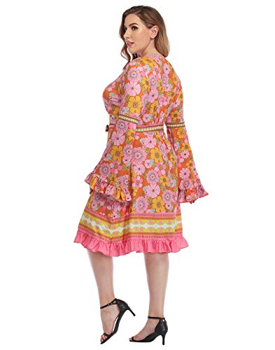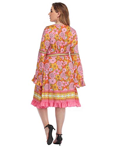 More information about HDE Plus Size Bell Sleeve Dress Boho Vintage Hippie A line 70s Pastel Goth Witch