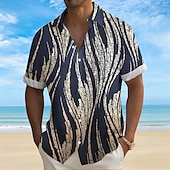 More information about Men's Geometric Lines / Waves Sparkling Glitter Shirt Summer Shirt Button Up Shirt Short Sleeve Fashion Casual Outdoor Vacation Summer Spring Turndown 3D Print Collared Shirts Front One Pocket Black