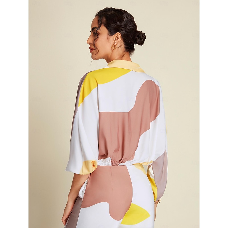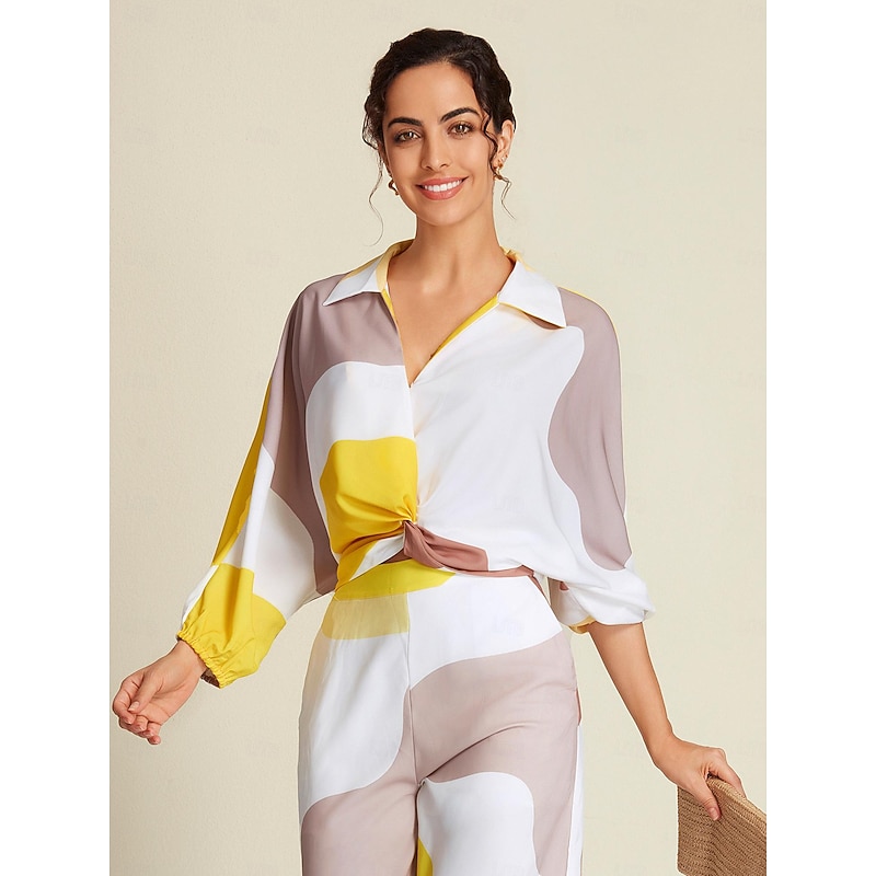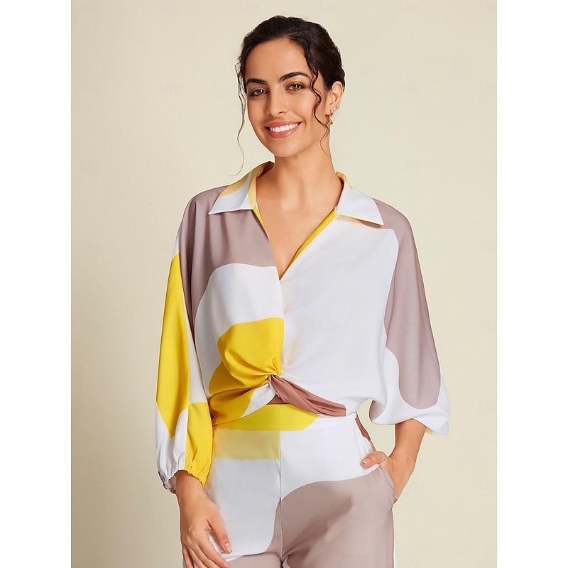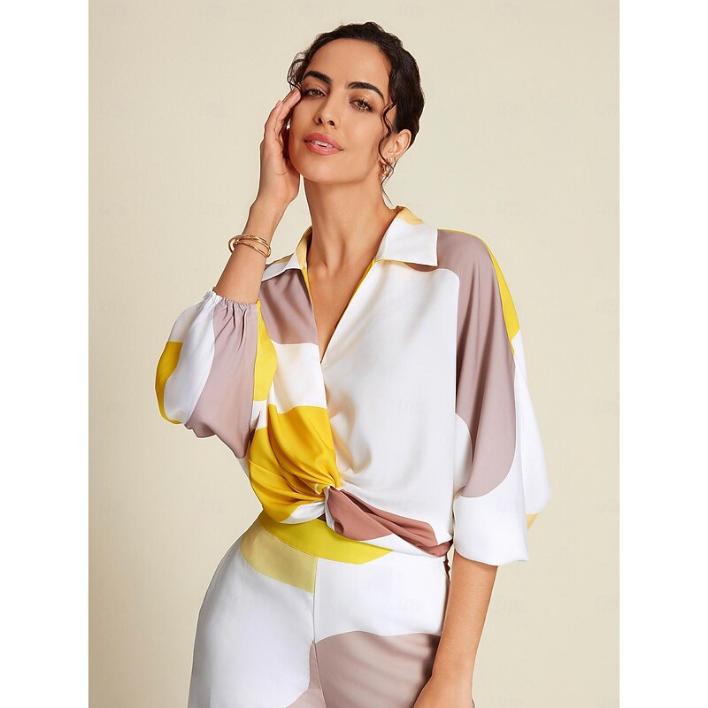 More information about Satin Contrast Knot Front Balloon Sleeve Shirt