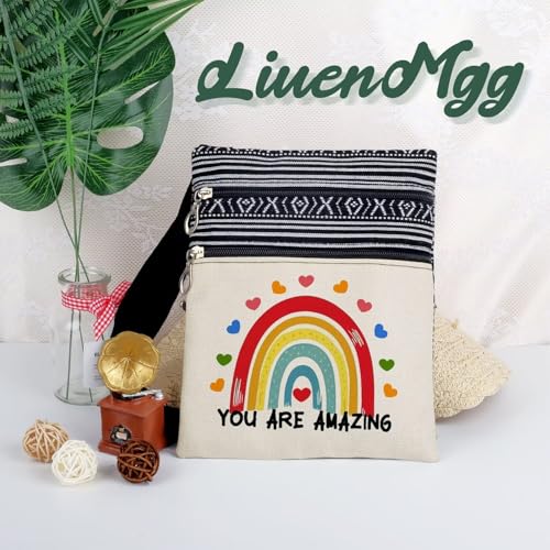 You Are Awesome Messenger Bag Small Ethnic Pattern Printed Adjustable Strap Crossbody Zipper Bag Rainbow Phone Bag Wallet Cute Shoulder Handbag Inspirational Present for Women 7