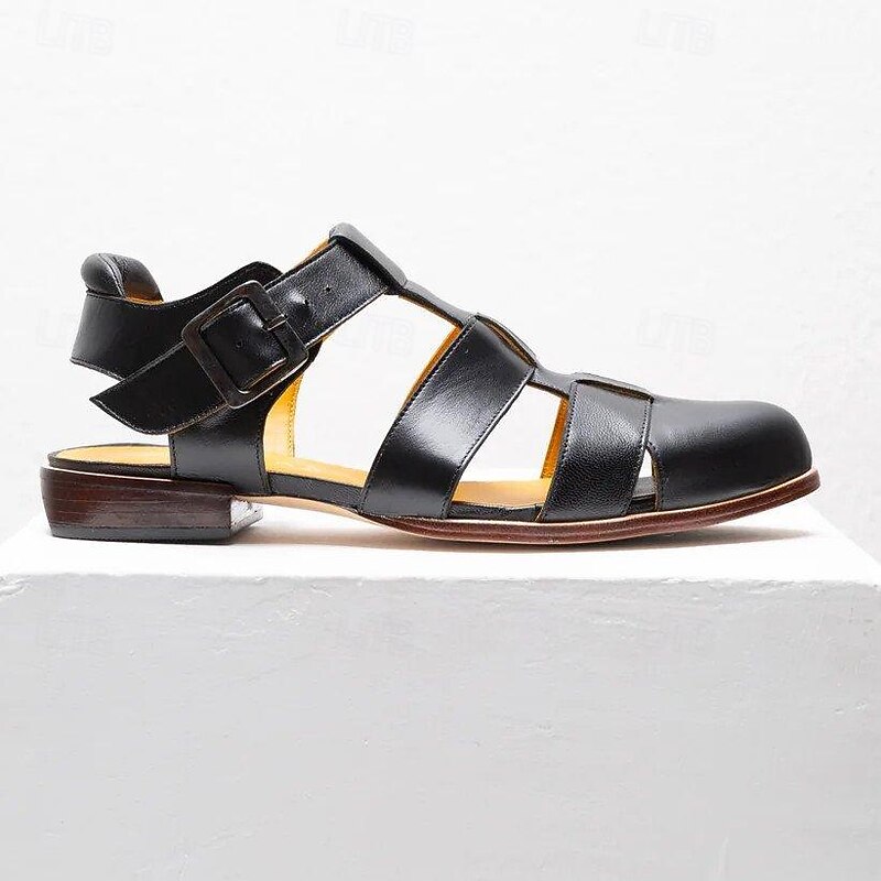 Women's Brown Faux Leather Fisherman Sandals – Vintage Closed-Toe Buckle Flats for Summer, Travel & Casual Outfits 1