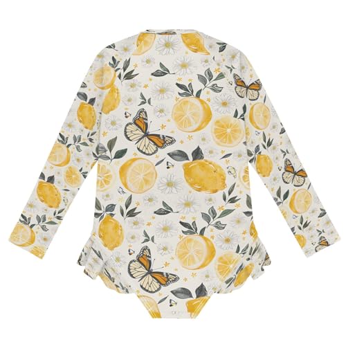 trending ! Lemon Flowers and Butterflies Girls Long Sleeve Swimsuits One Piece Zipper Bathing Suit UPF 50+ Rashguard Swimwear