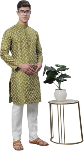 • Collar: Mandarin Collar, Sleeves: Full, Fit type: Regular/ Comfort, Length: Knee length Kurta