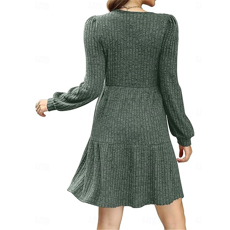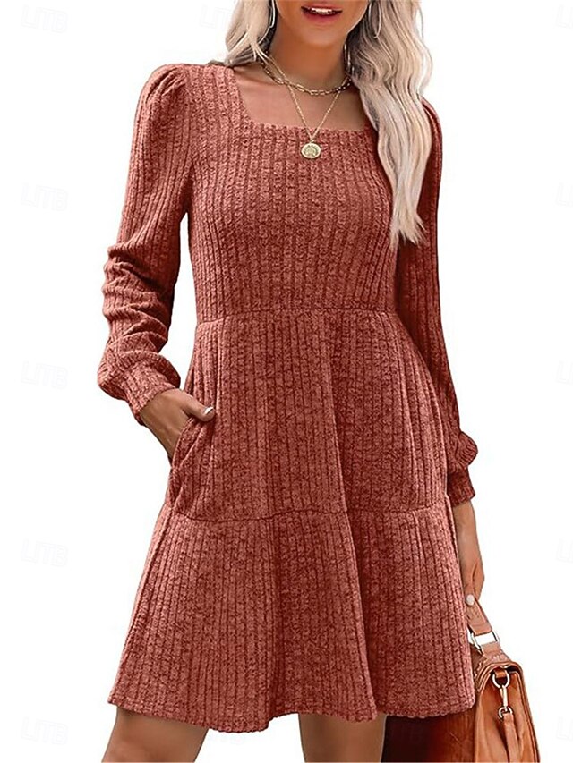 More information about Women's Sweater Dress Casual Soft Pure Color Ribbed Square Neck Pocket Knitted Long Sleeve Long Tops Knit Outdoor Daily Weekend Brown Green Fall Winter