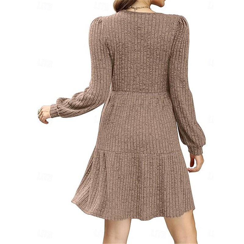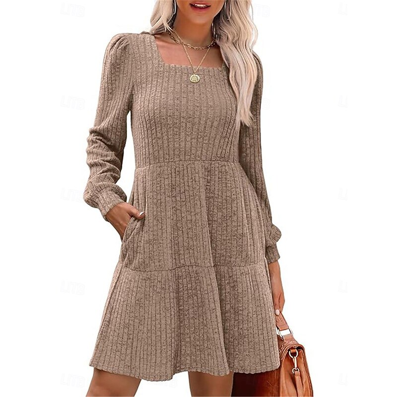 Highlights [Fabric:] Crafted from a high-quality polyester with a micro-elastic ribbed knit, this women's sweater dress provides a cozy and soft touch ideal for fall and winter. The material offers a gentle stretch, ensuring comfort and ease of movement. [Fit & Style:] Featuring a regular fit with a flattering A-line silhouette, the dress includes a gathered waist for an elegant and comfortable fit. The pure color design enhances its versatility, while the long sleeves add sophistication suitable for a variety of occasions. [Design Highlights:] This sweater dress boasts a modern square neckline and practical side pockets, seamlessly combining style with functionality. The textured ribbed knit pattern adds depth and visual interest to the overall design. [Occasions:] Perfect for daily wear, outdoor activities, and weekend outings, this dress effortlessly transitions from casual to semi-formal settings. Whether you're heading out for a relaxed day or an evening gathering, it offers both charm and comfort. [Size Information:] Available in sizes M, L, and XL, the dress caters to a range of body types, ensuring a suitable fit for various customers. The easy-care fabric is machine washable, ensuring convenience for your wardrobe needs.