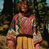 More information about Women's Sweater Pullover Daily Casual Graphic Ribbed Crew Neck Knitted Print Long Sleeve Regular Tops Knit Outdoor Weekend Pink Fall Winter