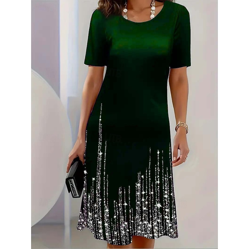 More information about Women's Midi Dress Elegant Party Evening Crew Neck Short Sleeve T Shirt Dress Tee Dress Shift Dress Casual Formal Daily Regular Fit Floral Abstract Short Sleeve Crew Neck Black Blue Green Spring
