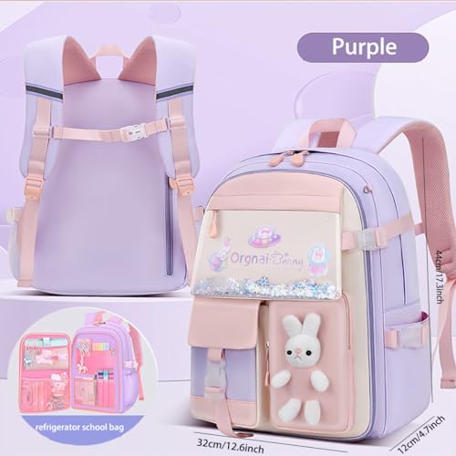 HOT ! Girls Backpack,Kawaii Bunny Backpack for Girls Kindergarten Cute Elementary Schoolbag with Lunch Box Kids Children Bookbag Casual Daypack with Chest Strap