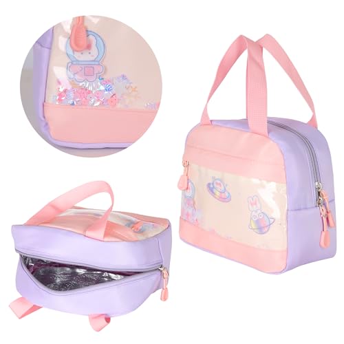 Girls Backpack,Kawaii Bunny Backpack for Girls Kindergarten Cute Elementary Schoolbag with Lunch Box Kids Children Bookbag Casual Daypack with Chest Strap 4