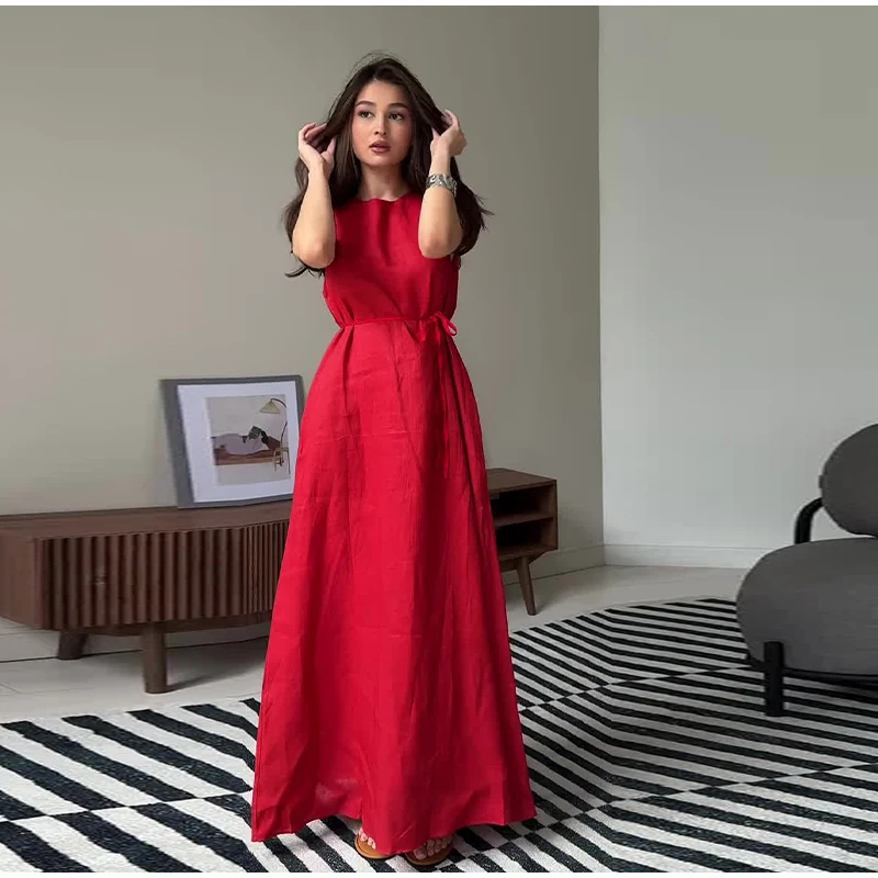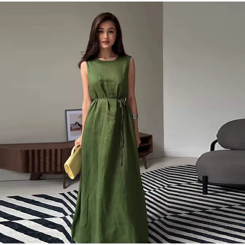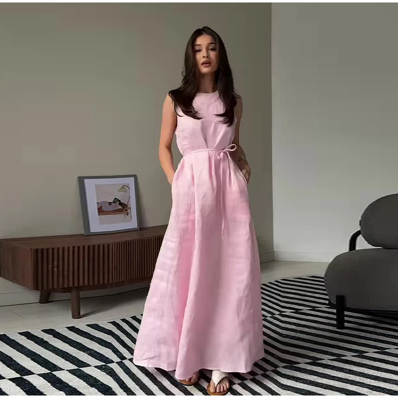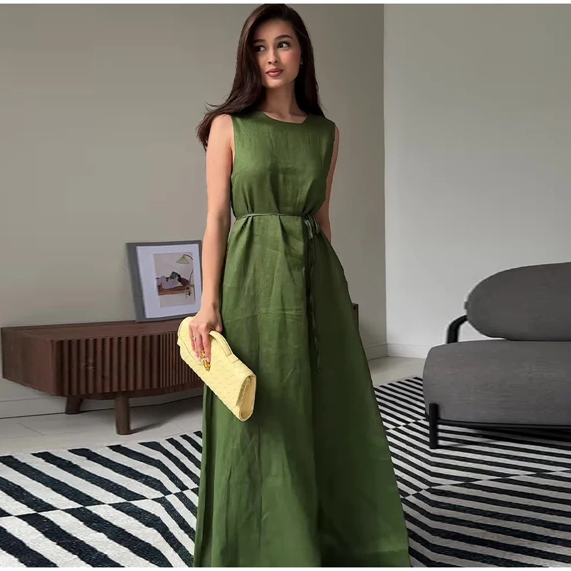 1.Elegant Sleeveless Maxi Dress:Features a sleek sleeveless design and a high - waist tie - up detail. This dress creates a graceful silhouette, perfect for formal events, garden parties, or summer weddings.