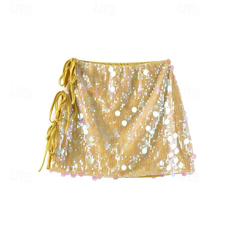 Women's Skirt Sparkly Skirt Fashion Mini Mid Rise Skirts Plain Sequins Micro-elastic Party Cocktail Party Yellow Green Summer Polyester 2