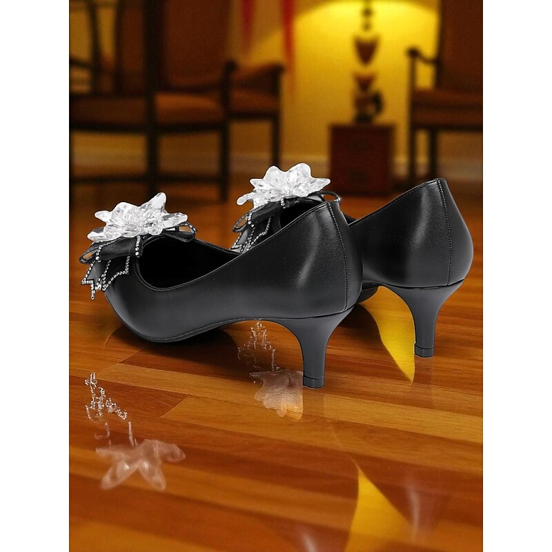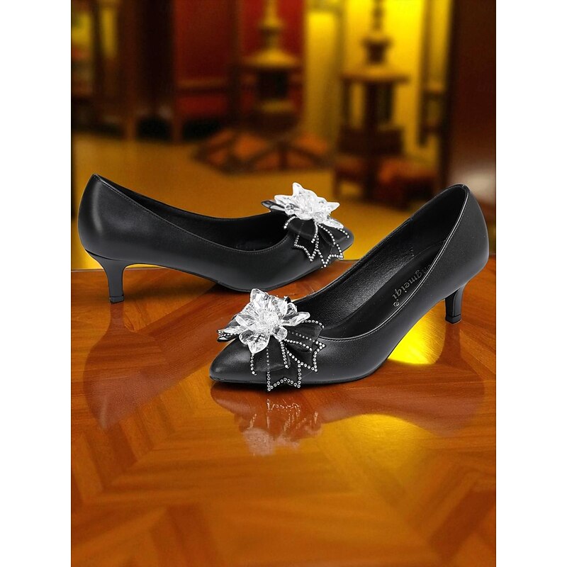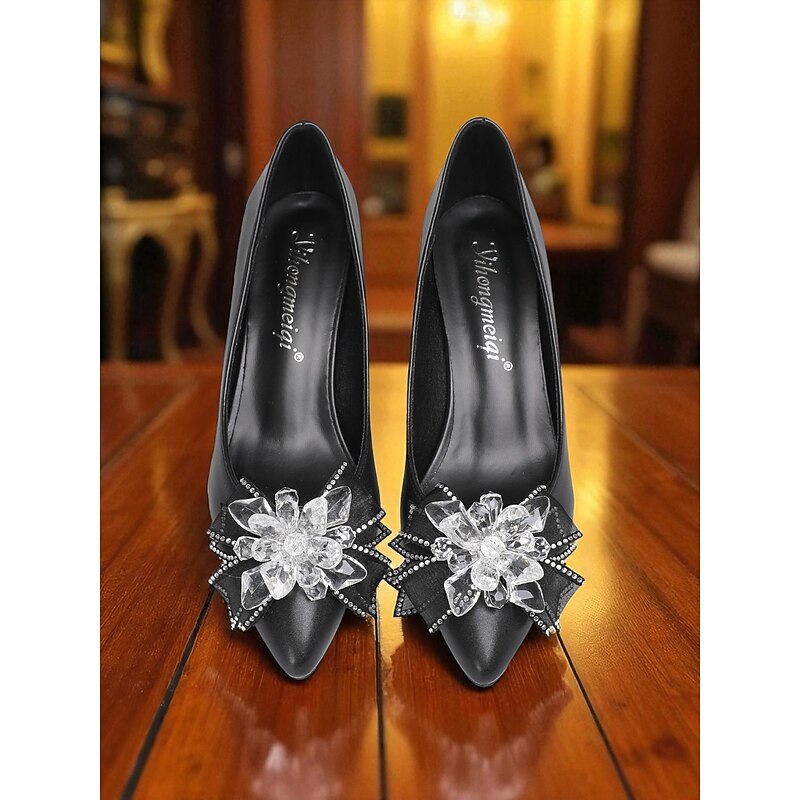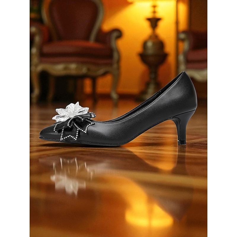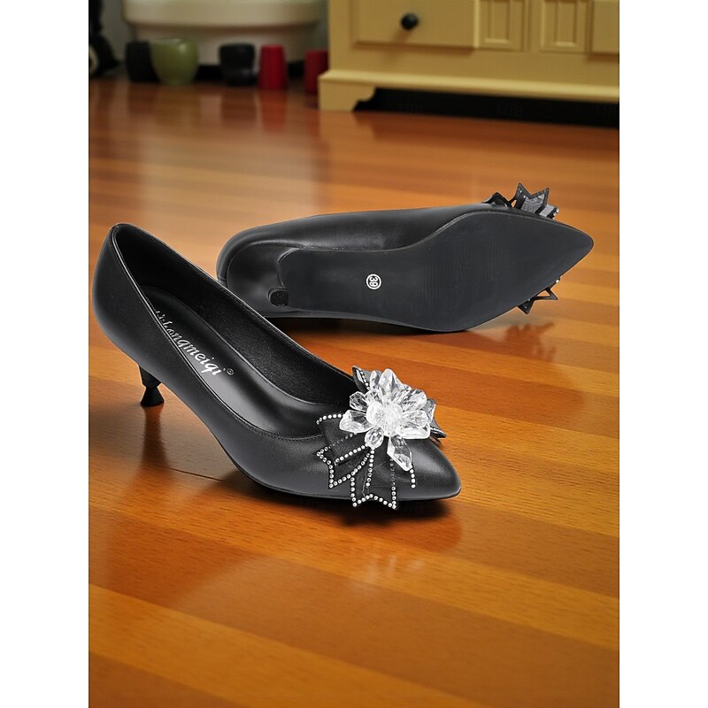 Highlights - High-quality PU upper materials - Luxurious synthetic leather lining - Elegant rhinestone embellishment - Classic round toe shape for comfort - Durable rubber outsole for long-lasting wear