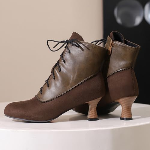 Alyaafifa Lace Up Booties for Women 2 Inch Kitten Low Heel Comfy Pointed Closed Toe Vintage Gothic Victorian Ankle Boots Two-Toned Matte Leather Short Boots Working Party 4