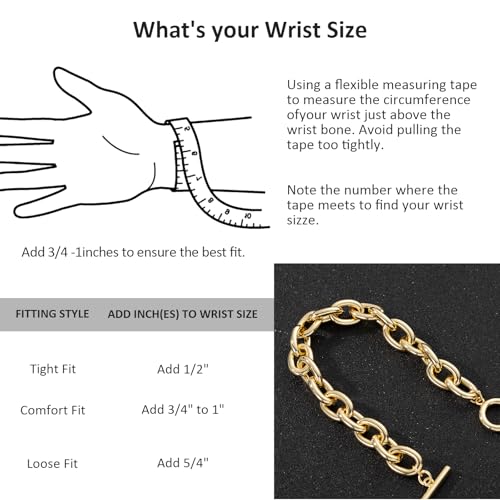 Material: Yellow GoldMetal type: Yellow GoldClasp type: ToggleChain type: Cable ChainMetal weight: 1.28 ouncesGem type: No gemstone【 Chunky Gold Cable Bracelet 】Our 14k gold bracelets for women features a toggle clasp, measuring 7.5 inches in length and 12.6mm in width. This gold bracelet features a chunky cable chain, immersing oneself in a world of exquisite design. This unique design element adds a touch of refinement and personality to each women's chain bracelet, making it stand out from the crowd.【Hypoallergenic】Each gold bracelets for women are made of 14K gold and treated with a special process. Every link is finely hand-polished to prevent loss of luster and extend wearability. Our gold chain bracelets women are nickel-free, hypoallergenic and suitable for sensitive skin, providing a comfortable wearing experience.【 Versatile】Our chunky gold bracelet is a perfect companion for an elegant style. From casual chic to formal elegance, these bracelets can be paired with any understated and refined clothing. Their subtle elegance makes stackable bracelets perfect for layering or individual wear, suitable for both men and women, and can add a touch of luxury to any look【 Gifts for Your Loved Ones】We know and respect your love for your significant other. Our products will help you express your feelings towards them. With this unique piece of jewelry, your partner will feel your presence every time they wear it. Our 14K gold bracelets are packed in a attractive box. A fashionable and unique design can give the person you love a surprise.【After Sales Service】We are very concerned about customers' user experience and after-sales demands, always putting their shopping experience first. If you are not satisfied with our gold bracelets for women, please contact us immediately via email. We will reply and resolve your issue within 24 hours. Perfect for everyday use. superior materials and excellent craftsmanship ensure long-lasting durability.