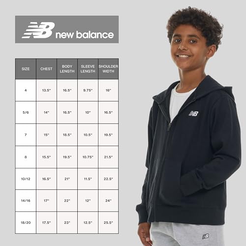 New Balance Boys Zip Up Hoodie – Full Zip Premium Cotton Blended Fleece Sweatshirt with Lined Hood, Comfortable Fit 7